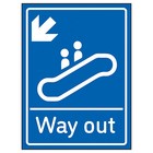 Way Out Arrow Down Left Blue Safety Sign Clear For Visitors