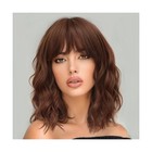 AISI HAIR Synthetic Wavy Curly Bob Wig with Bangs Ash Auburn Short ... Fast Ship