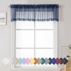 Navy Blue Window Valance 14 Inches Long 2 PCS, Solid Voile Blue Curtains Dual Ro