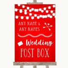Red Watercolour Lights Card Post Box Personalised Wedding Sign