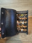 Vintage Black Leather Fly Fishing Dry Fly Storage Case Flys Included