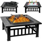 3 in Fire Pit Table with Poker & Spark Screen Black Quilushey Outdoor Burning