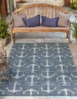 Outdoor Coastal Collection Area Rug - Ahoy (4' 1" x 6' 1" Rectangle, Blue/ Iv...