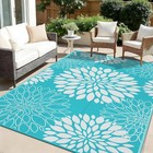 Waterproof Reversible Patio Rug 6x9, Floral Teal Outdoor/Indoor Camping Mat