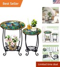 14 Outdoor Side Table round Small Mosaic Patio Accent Indoor End Plant Metal Cof