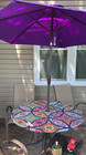 Round Outdoor Tablecloth with Umbrella Hole, Vinyl Patio Table Cover with Zipper