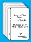 (4) White Aluminum Sign Blanks, 12 x 18 x 0.040, Double Sided, In/Outdoor