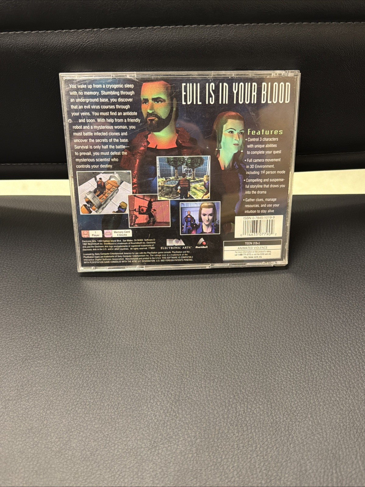 "OverBlood" is a 1997 action-adventure video game released for the Sony PlayStation 1 console. Published by Electronic Arts, the game is rated T-Teen and offers a single-player experience. Set in a dark and menacing environment, players must navigate through various levels filled with animated violence while using a gamepad or joystick to control their character. The game's uniquely immersive gameplay and atmospheric setting have made it a cult classic among fans of the genre.