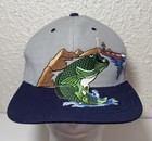 True Vintage 90s Bass Fishing Trucker Hat Navy Snapback Mesh Cap Embroidered EUC