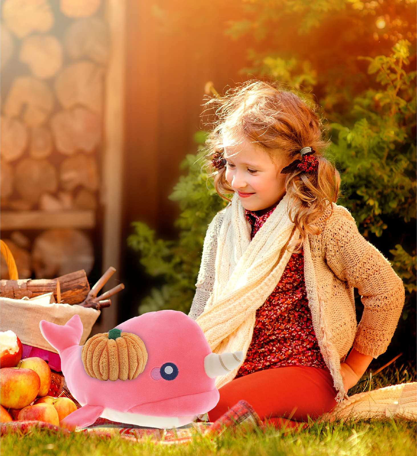DolliBu Baby Soft Pink Narwhal Stuffed Animal with Pumpkin Decor - Pumpkin Plush Animal for Fall, Halloween and Thanksgiving, Pumpkin Toy for Baby, Kids, Adults - 21 inches \n \nYour browser does not support the video tag. \n \n \n \n \n THE PINK NARWHAL PLUSH COMES WITH UNIQUE PUMPKIN PLUSH DESIGN YOU WILL LOVE - Baby Soft Pink Narwhal Halloween stuffed animal comes with a pumpkin plush toy. Its unique design sets it apart from other soft stuffed animal. This Halloween plush combo gives a festive touch and makes any Thanksgiving fun. This Halloween stuff makes fall, Halloween and Thanksgiving meaningful. This plush pumpkin is perfect for cuddling. \n THE NARWHAL PUMPKIN TEDDY BEAR IS FOR EVERYONE WHO LOVES HALLOWEEN TOYS - The Baby Soft Plush Pink Narwhal stuffed animal pumpkin plush toy designed with fall plush theme makes for sweet Halloween kids gifts, Babys first Halloween gift and thanksgiving gifts for friends and family. Welcome spooky month and share the fun of trick-or-treating with loved ones by gifting them a cute custom stuffed animal Narwhal plush doll with a pumpkin soft toy. \n INCLUDED IN THE PURCHASE OF THE PUMPKIN STUFFED BEAR PLUSH - Includes 1 DolliBu Baby Soft Plush Pink Narwhal Stuffed Animal Plush to celebrate fall season. The Pink Narwhal features cartoon-like eyes, and an orange plush pumpkin decor toy on the plush animals side. Decorated with unique pink and beige plush, realistic design and soft fabric perfect for cuddles and snuggles. Pink Narwhal plush animal measures 21Lx6Wx5H inches. \n HIGH-QUALITY FALL GIFT FOR KIDS AND ADULTS - The Pink Narwhal baby soft stuffed animals for cuddling is a cute soft stuffed animal covered in pink fluffy plush made of premium quality 100% polyester. Snuggly soft pumpkin decor Halloween toys crafted with durable materials designed to deliver a loving message to your friends and family. Maintain the the plush, wash with water and allow to dry. Add to a Halloween basket for baby, kids or adults. \n IDEAL USE FOR THE STUFFED PUMPKIN PLUSH HALLOWEEN PLUSH TOYS - Surprise your loved ones with cute pumpkin stuffed animal as fall gifts for kids and make the season extra special. Gifting Halloween presents for kids and adults is a cute way to share the joy of Halloween, Thanksgiving, and the Harvest season. Make the occasion memorable and surprise your loved ones with Friendsgiving gifts and Halloween stuffed animals they will love to display. \n \nSurprise your loved ones with sentimental cute stuffed animals for teen girls and boys to give as a Halloween gift for baby and make the season extra special. Gifting Halloween Stuff is a cute way to share the joy of Halloween, Thanksgiving, and the Harvest season. Make the occasion memorable and surprise your loved ones with a Friendsgiving gift and kids Halloween toys to display and collect. The Baby Soft Plush Narwhal stuffed animals for girlfriend and boyfriend designed with Fall theme makes for sweet babys first Halloween gift and fall stuffed animals for friends and family. Welcome the new season and share the fun of trick-or-treating with your loved ones by giving them a cute and cuddly spooky month plush Narwhal toy with a pumpkin stuffed plush toy. Baby Soft Plush Pink Narwhal Halloween stuffed animals for kids comes customized with a stuffed pumpkin decor toy. Fun prizes for adults, and baby Halloween treats they can win at the Halloween contests. Show them you are thankful for them this Thanksgiving. The Pink Narwhal spooky plush toy is a cute Thanksgiving stuffed animal made of premium quality polyester and studded with soft fillings. Covered with pink fluffy plush. A snuggly Thanksgiving plush crafted with durable materials designed to deliver a loving message to your friends and family. To maintain the cleanliness of the soft stuffed animals for girls and boys, wash with cold water and allow to dry. Includes 1 DolliBu Baby Soft Plush Pink Narwhal Stuffed Animal Plush perfect to celebrate a new season. The Pink Narwhal Halloween baby toy comes with a pumpkin attached to the narwhal's side. Pink Narwhal Halloween plush measures 21Lx6Wx5H inches.