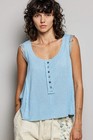 POL Textured Knit Round Neck Tank with Lace Detail