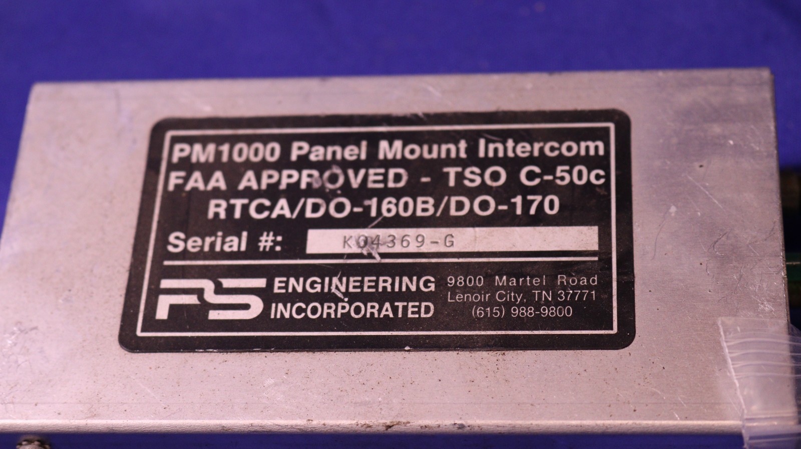 This is a PS Engineering PM1000 Panel Mount Intercom (no faceplate), serial number K04369-G. This item was removed during an installation project at our facility. This item is being sold "As Is" as we have no ability to bench check the unit. Sub this item for yours in a plug n play situation or use it for parts to repair a unit that is not functioning.