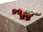 PVC TABLE CLOTH XMAS DECOR MINK BEIGE WHITE BAUBLES SLEIGH HEART SNOW WIPE ABLE