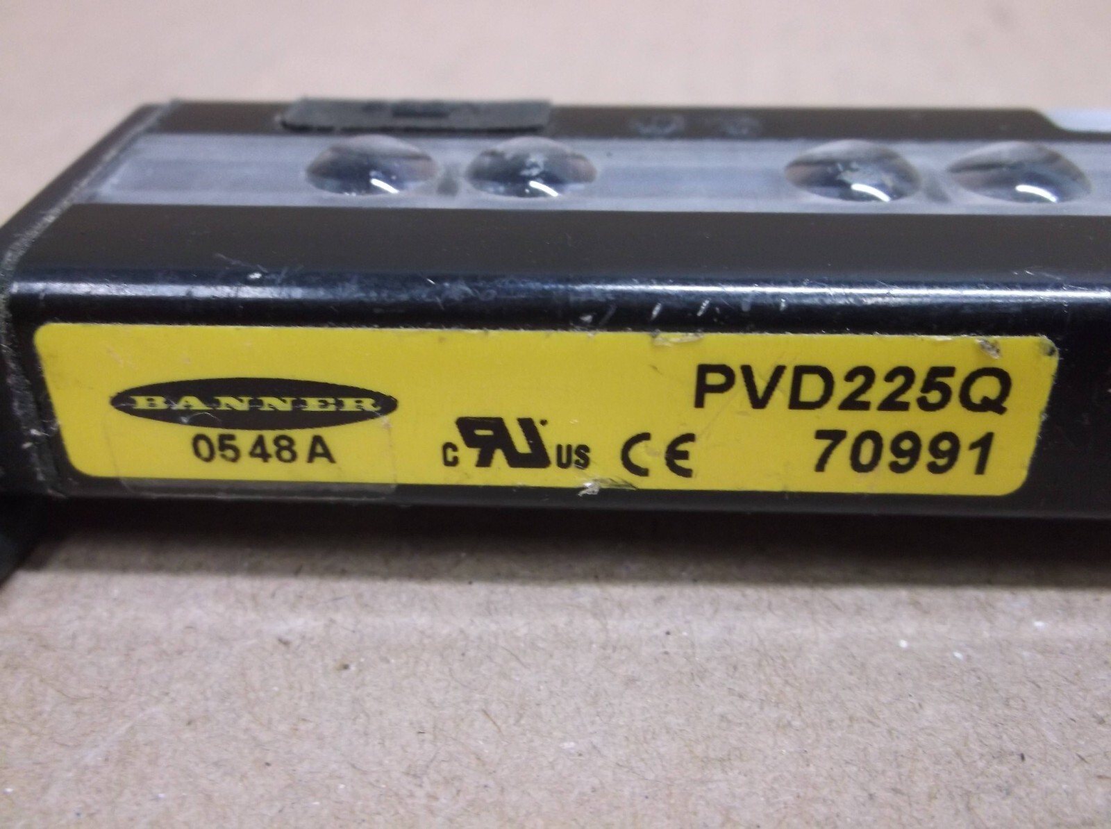 Up for sale is a Used Banner Sensor Part Number 70991 / PVD225Q. This/These came from a former dealer's demonstration / training / application room and was/were used sparingly if at all. There is 1 pictured and we have 1 currently available. We combine all our auctions won/bought from us to save on shipping. We guarantee not to be DOA the first 30 days after receipt. Thank you for looking.