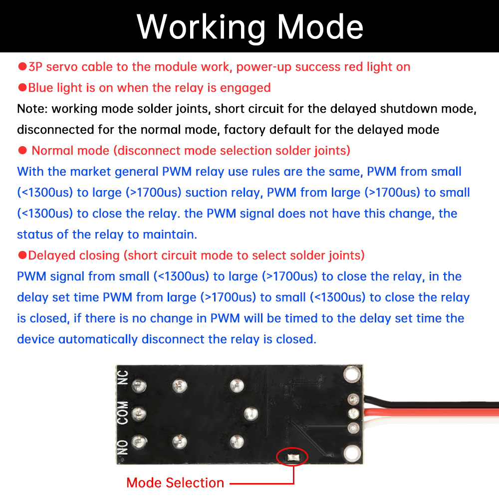 9: Is the relay a point-activated or self-locking? A: This is the remote control settings, and the relay has nothing to do, the relay only need to switch channel modeling PWM signal on the line!