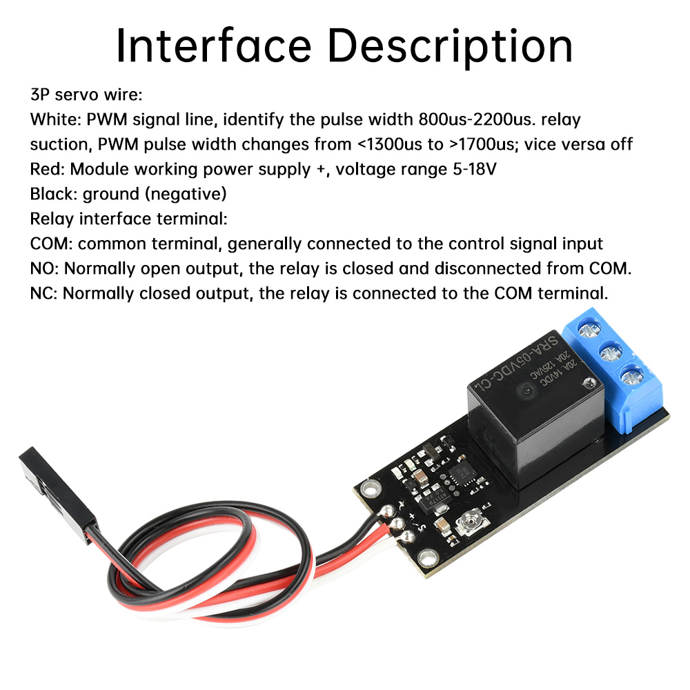 4: What is the signal of this startup? How big is the frame rate? A: air model pwm signal: 1ms to 1.3ms for state A, 1.7ms to 2ms for state B, A switch to B for open, B switch to A for close. Normally open and normally closed, the receiver sends a signal, normally open and normally closed.