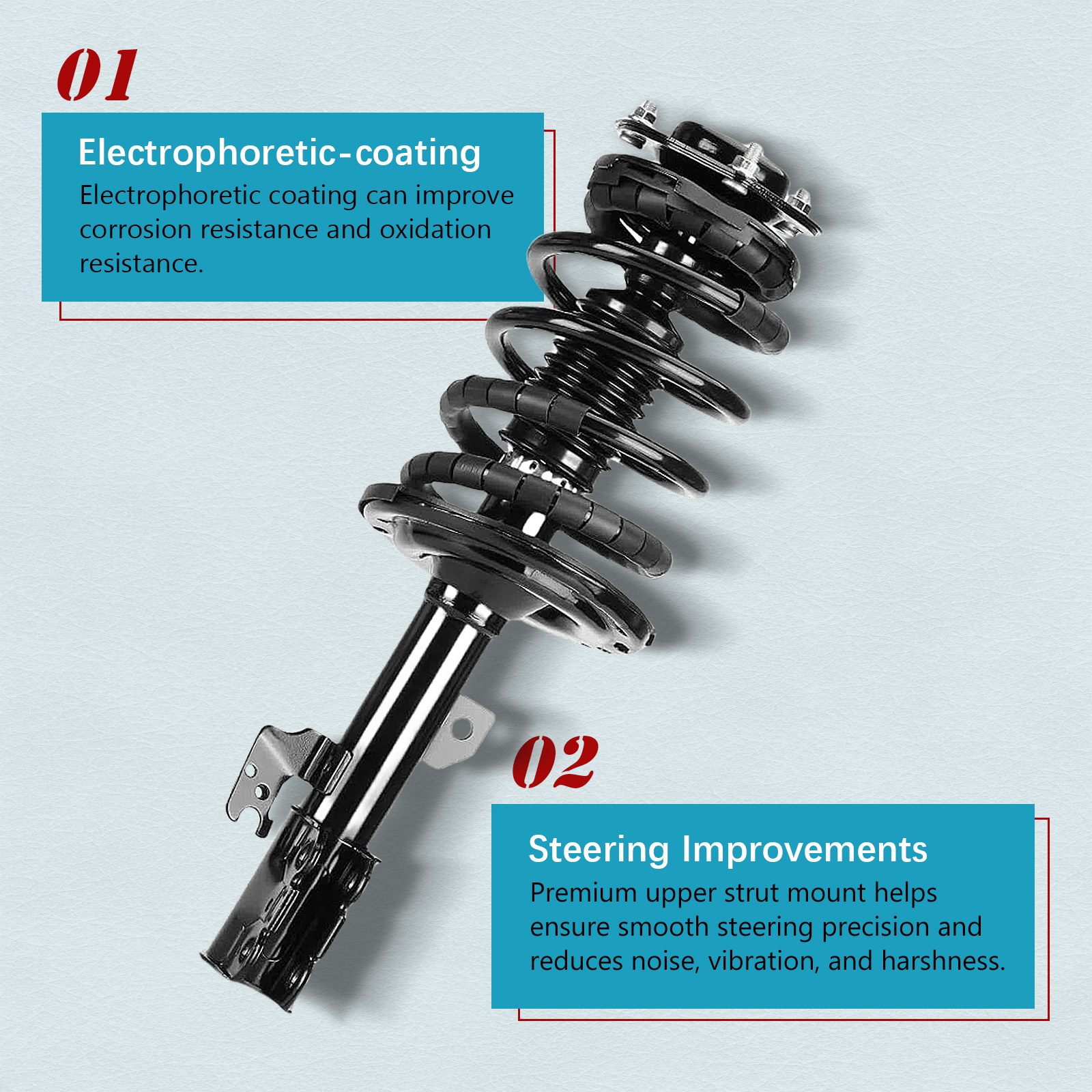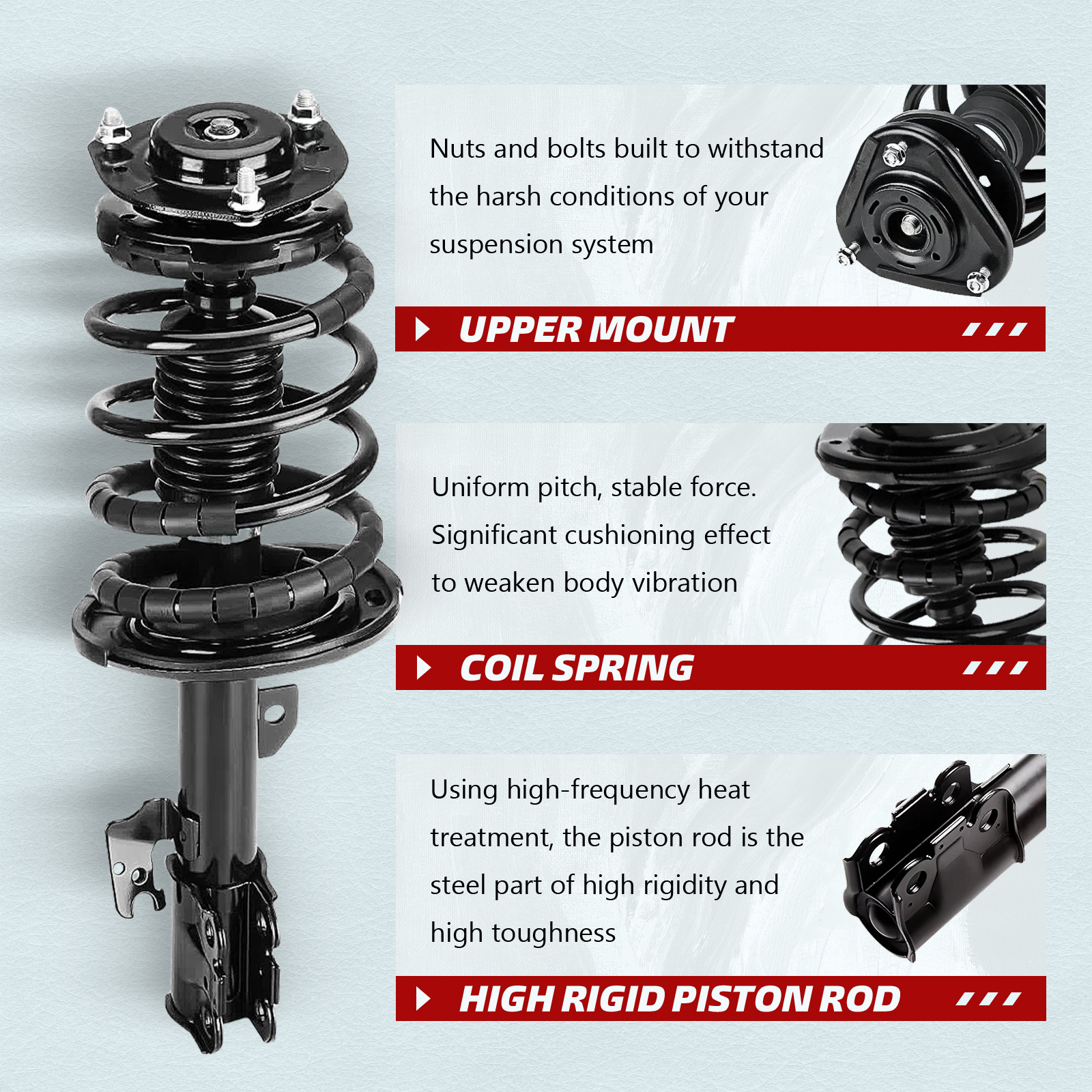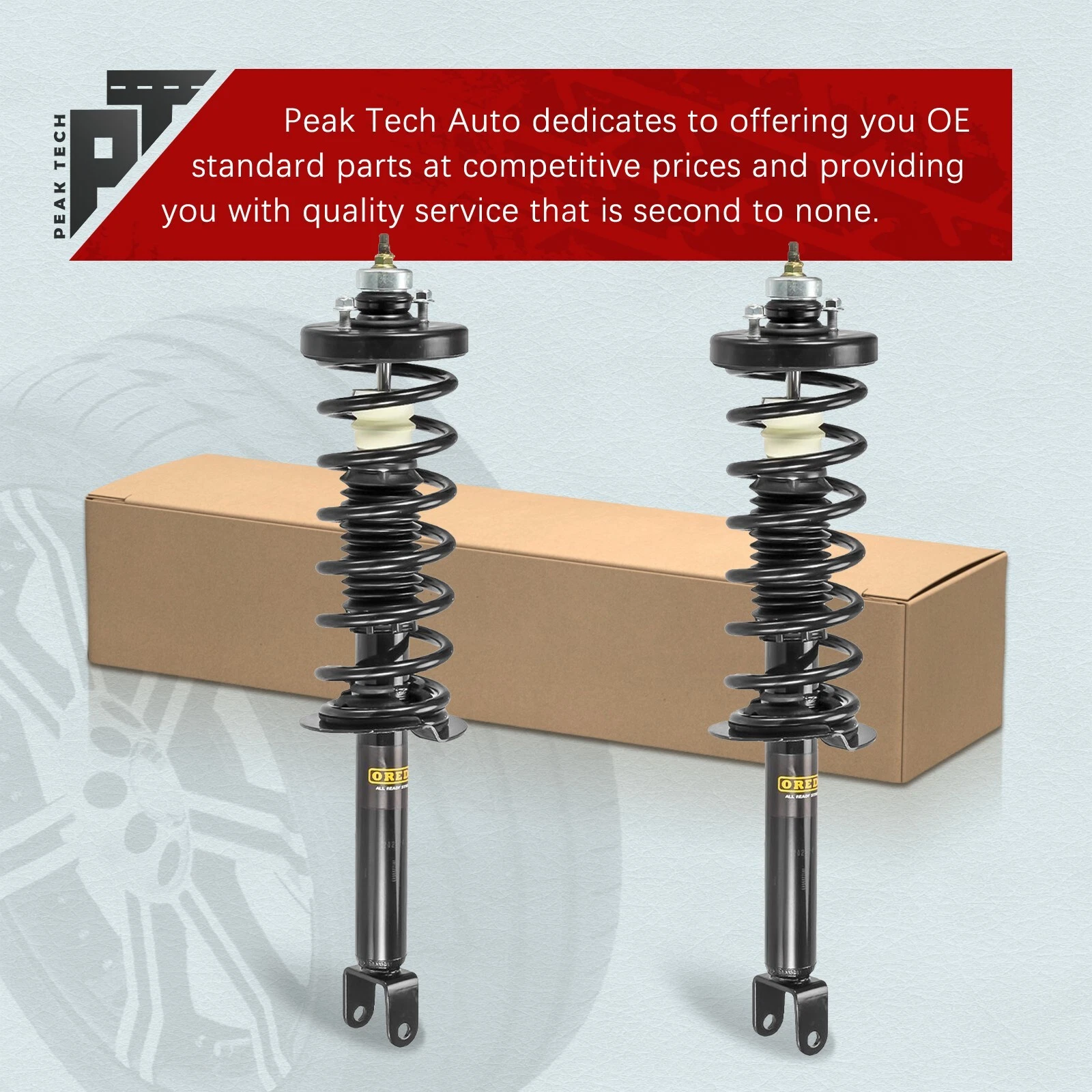 Peak Tech focuses on auto parts and provides struts and shock absorbers suitable for a wide range of applications. Peak Tech products deliver the look, feel, fit and performance of OE. We provide buyers with professional customer service, and hope to offer buyers a better shopping experience.