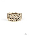 Paparazzi Rosy Residence - Brass - Topaz Rhinestones - 3D Brass Rose - Ring