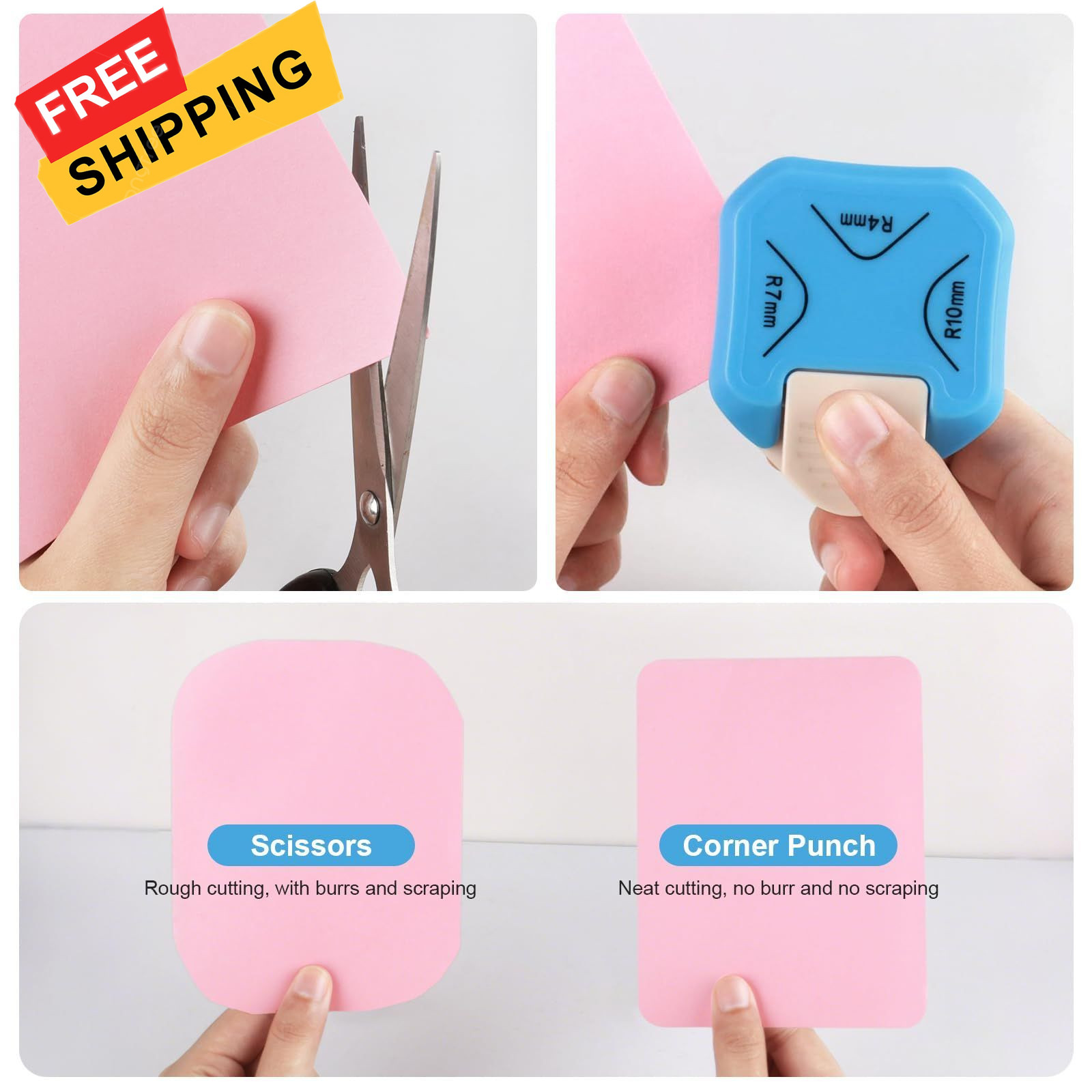 3 Corner Options: This corner punch rounder can create 3 different corner styles (4mm for business cards, 7mm for 4x6" photos, 10mm for scrapbook pages), perfect for various paper craft projects from business cards to scrapbook layouts. You can quickly change between styles with no extra tools needed