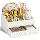 Paper Plate Dispenser with Drawer, Paper Plate Holder for Kitchen Counter, Wo...