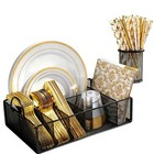 Paper Plate Organizer Countertop 6 Compartment Silverware Caddy Handles