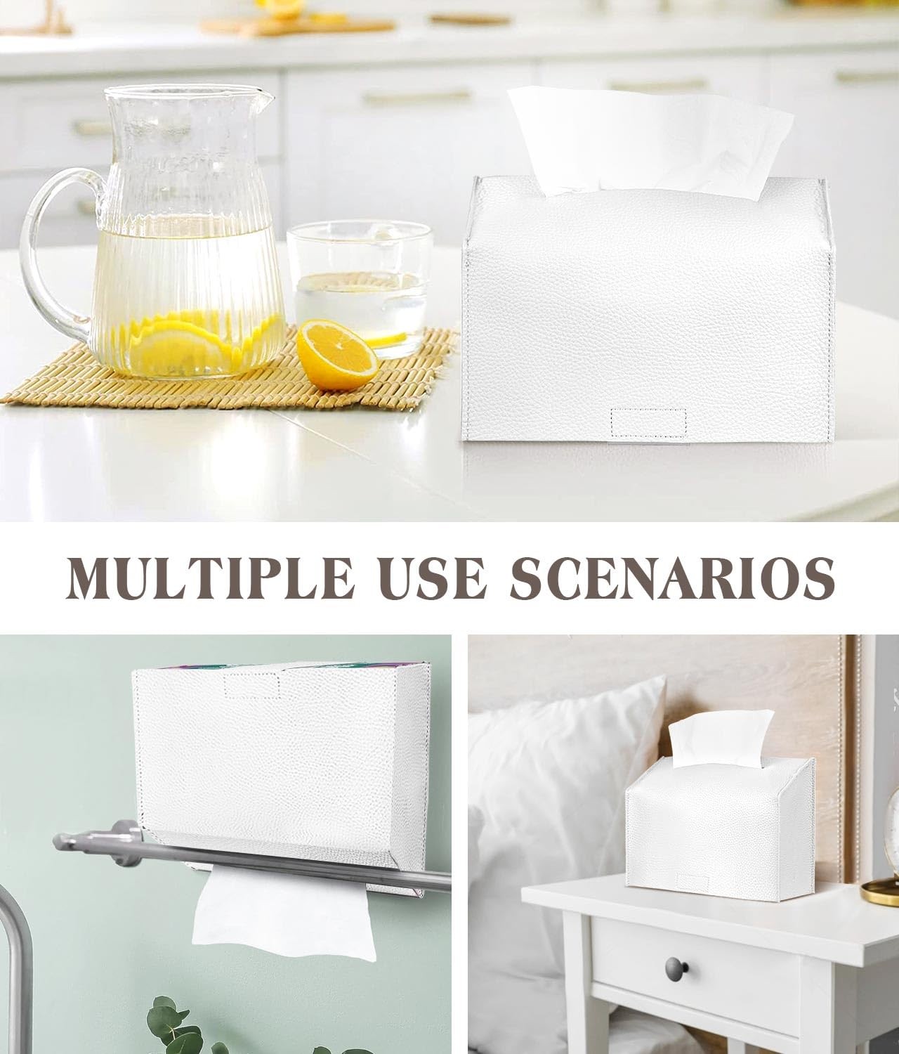 STYLISH TISSUE BOX COVER - This tissue box holder made of high quality PU leather, waterproof, odorless, it hides your hand towels box perfectly and also adds a new addition to your home decorations - So elegant and functional