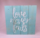 Rustic Wood Sign LOVE NEVER FAILS for Wedding/Bridal Shower Decor, 8" Square