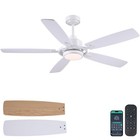 54"White Ceiling Fans with Lights and Remote, Modern Bedroom Ceiling Fans wit...