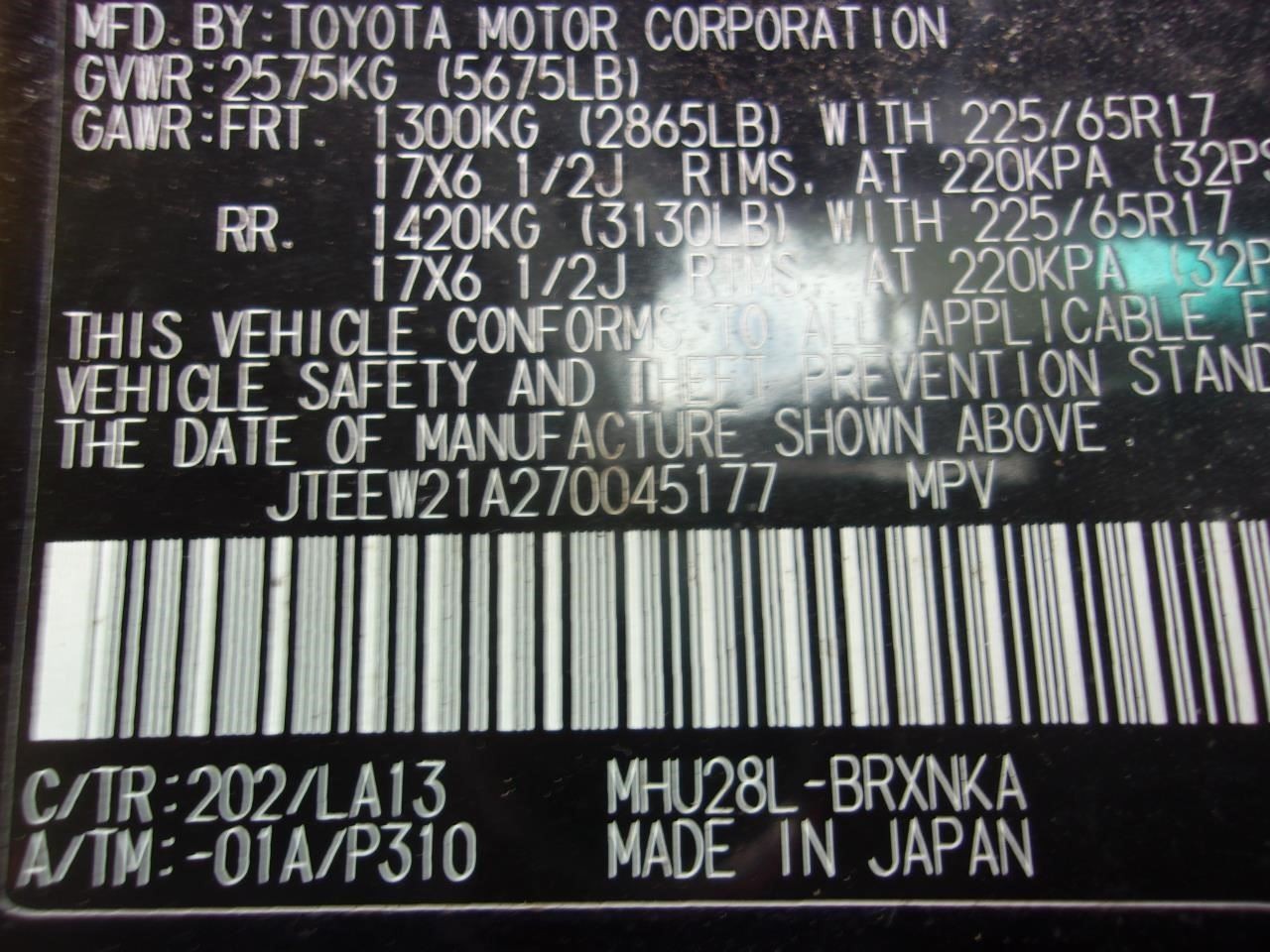 LEXUS RX330 04-06 R., w/o air suspension