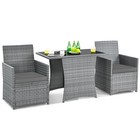 Patiojoy Patio 3PCS Rattan Furniture Set Cushioned Sofa Armrest Garden Gray