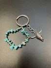 Modern Southwestern Natural Turquoise Agate & Silver Tone Bull Skull Keychain