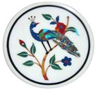 9 Inches Round Marble Coffee Table Top Peacock Pattern Inlay Work Balcony Table