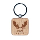 Peeking Moose Engraved Wood Square Keychain Tag Charm