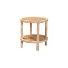Bohemian Natural Brown Mahogany Wood and Natural Rattan 2-Tier End Table