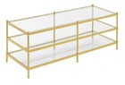 Pemberly Row Three-Tier Gold Metal Coffee Table With Clear Glass Shelves