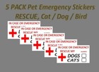 5 pack Pet Emergency Rescue Stickers Cat Dog Bird Vinyl Custom