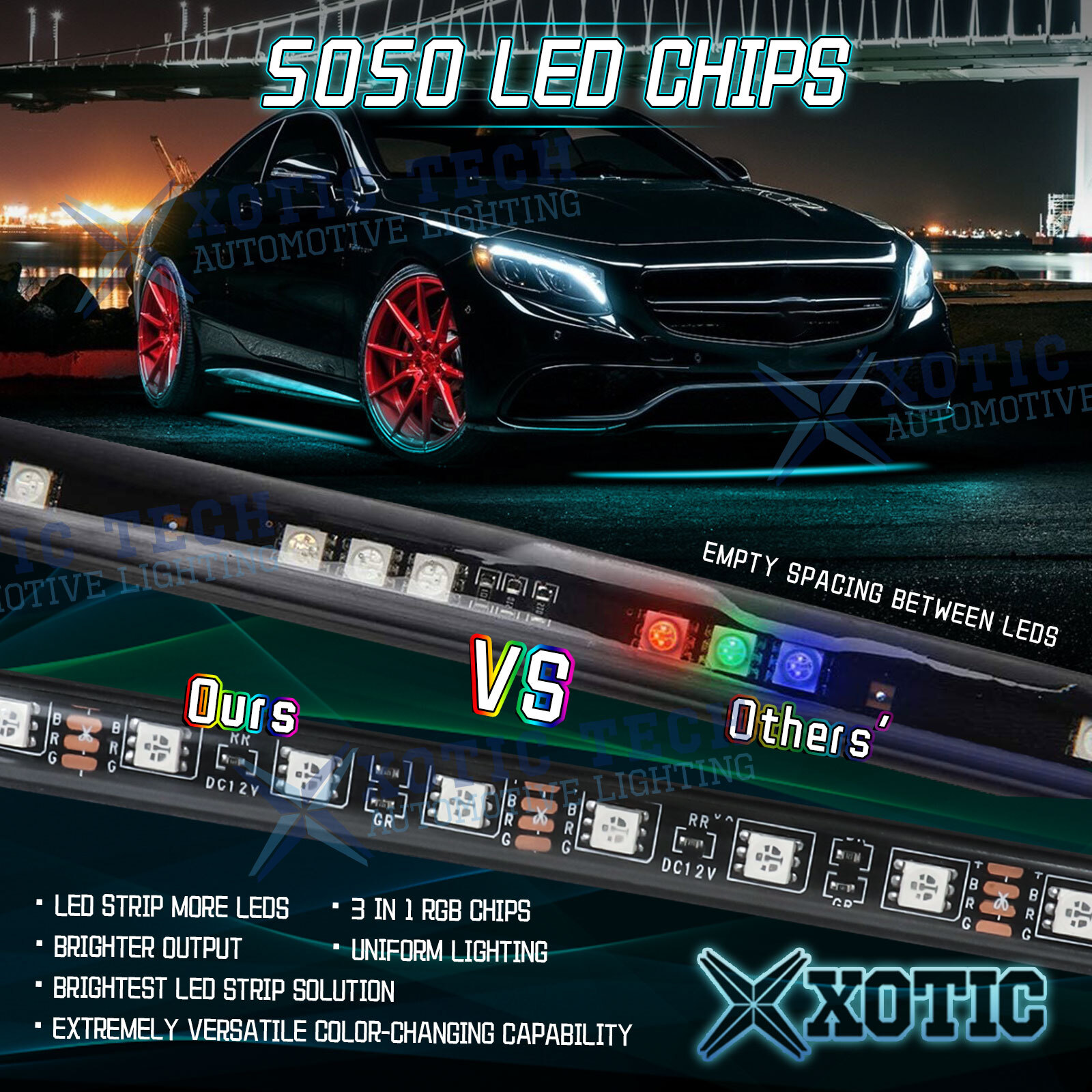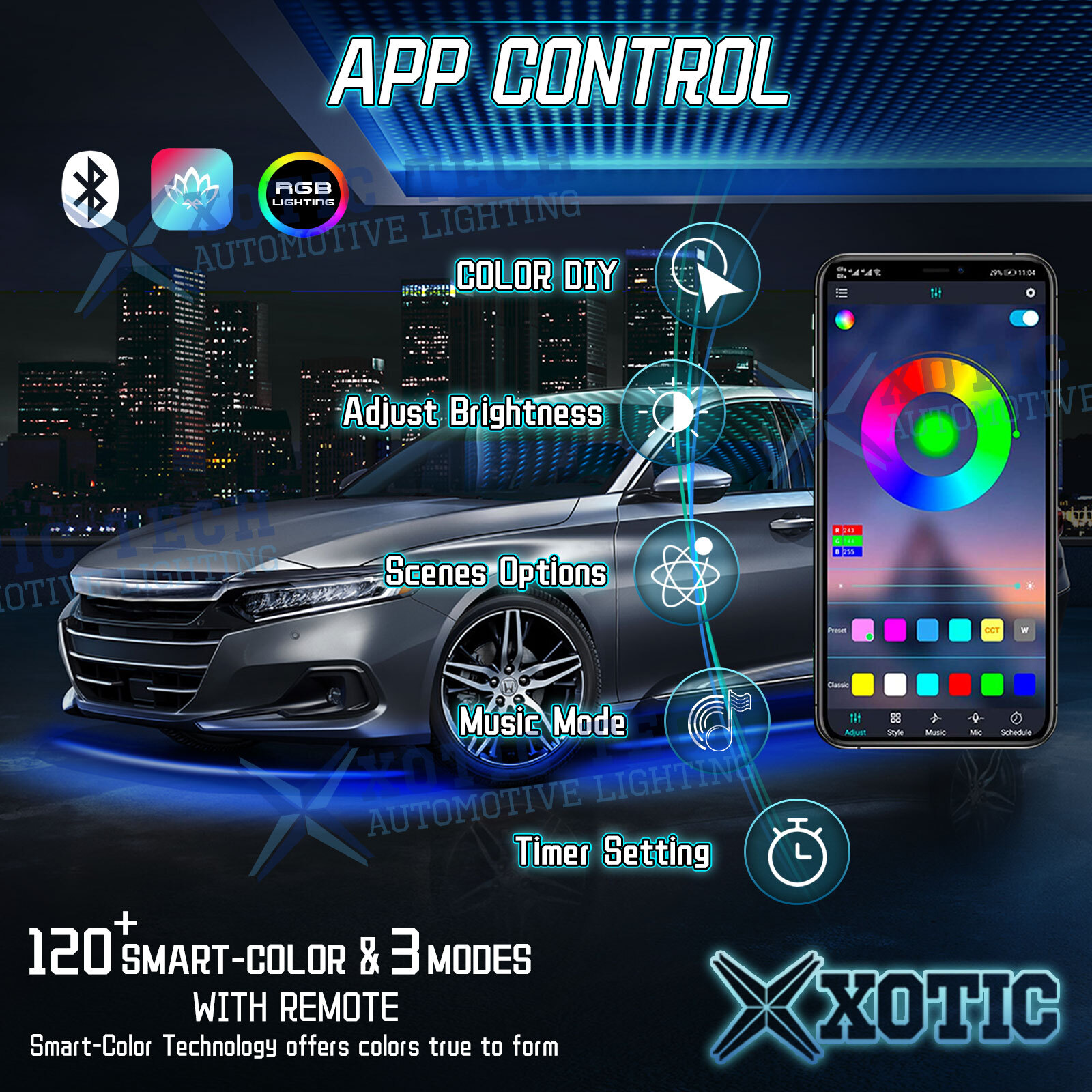【Dream Colors & High Brightness】Powered by 5050SMD 180-LED chips, 3 In 1 RGB Chips, brighter output, uniform lighting. Enhances the look and feel of your vehicle with brilliant lighting effects. Built-in 120 kinds of color display modes, you can also set your favorite display effect