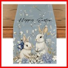 Bunny Rabbit Hydrangea Happy Easter Table Runner, Seasonal Spring Kitchen Din...