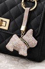 Rhinestone Scottie Dog Keychain Pink Crystal Bag Charm Gold Tone Purse Charm