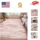 Pink Washable Rug 5x7 for Bedroom, Soft Abstract Rainbow Carpet for Living Ro...