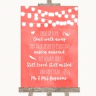 Coral Watercolour Lights In Loving Memory Personalised Wedding Sign