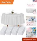 White Plastic Table Cloth - 24 Pack 84" round Disposable Tablecloths for round T