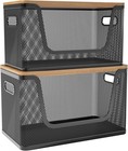 Generic Plastic Stackable Storage Bins with Bamboo Lid 2 PCS White 10x7in
