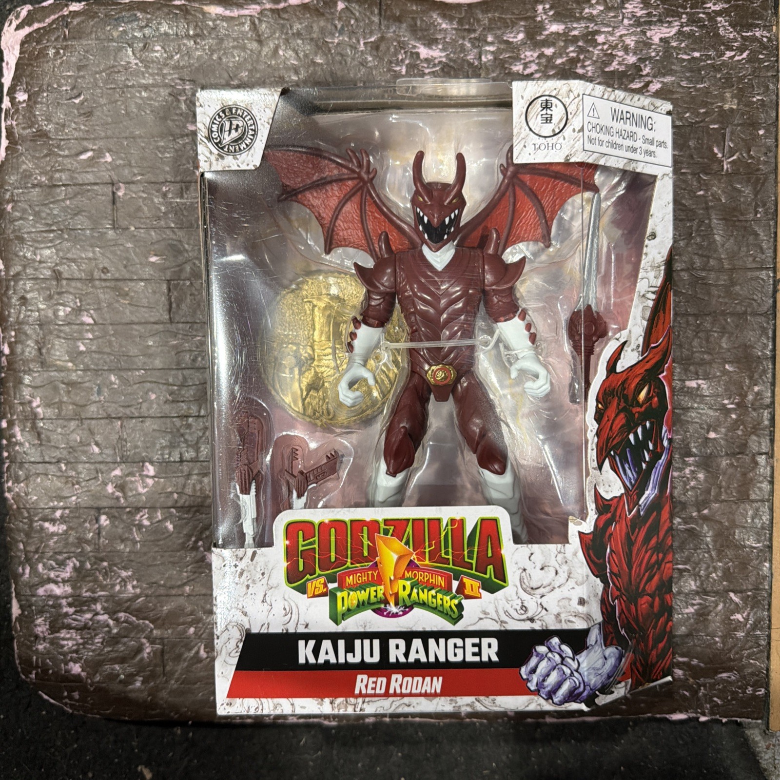This Playmates Godzilla vs Power Rangers crossover figure featuring Kaiju Red Rodan is a limited edition collectible from the New York Comic Con. Standing at 5 inches tall, this action figure is part of the Playmates Monsterverse Godzilla series and is made of plastic. With a red color scheme and adjustable features, this boxed item is a must-have for fans of the Godzilla franchise. Perfect for ages 8-11, this figure combines elements from the Power Rangers TV show with the iconic monster from the Godzilla movies, offering a unique addition to any action figure collection.