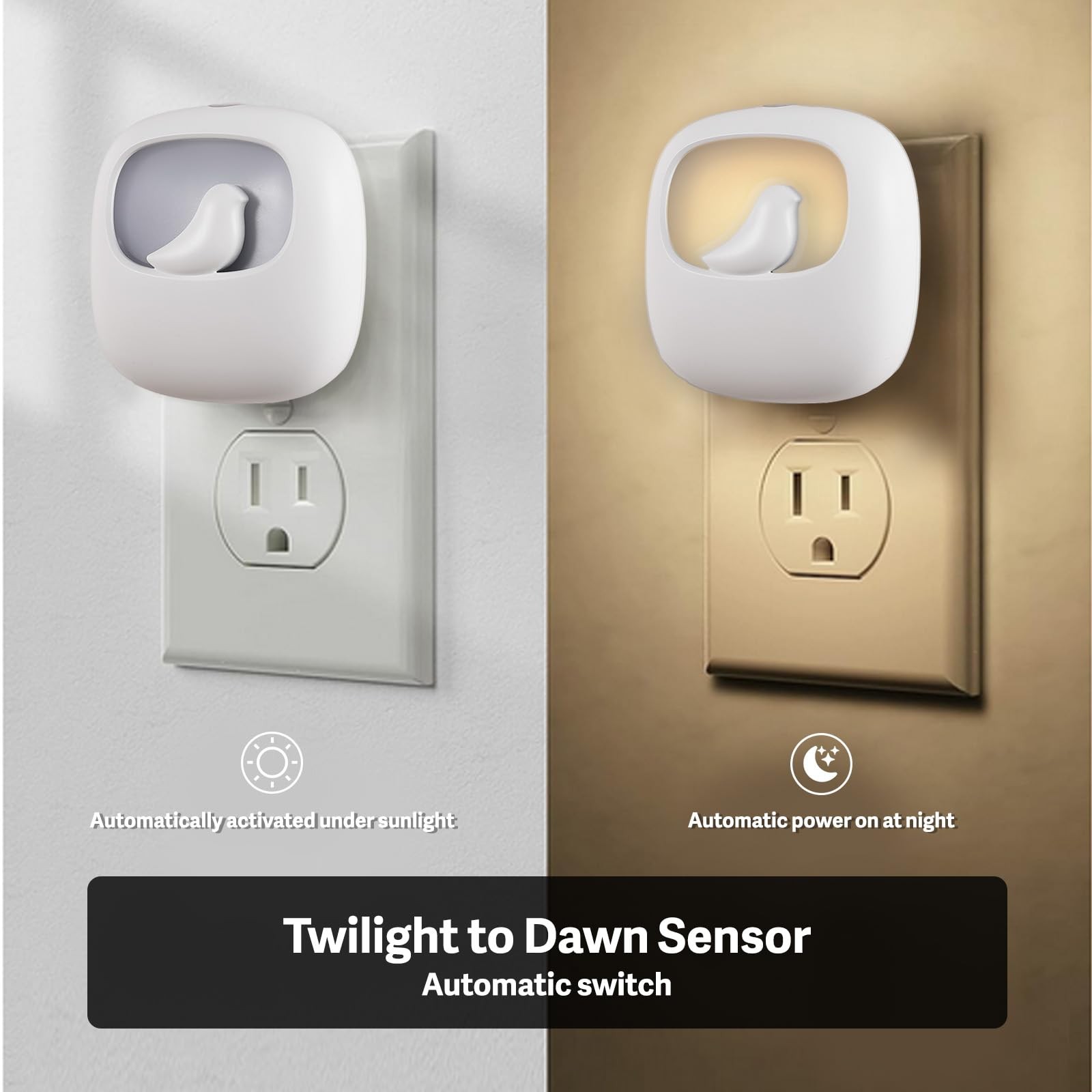 Plug in Night Light with Dusk to Dawn Sensor, 4 Pack Bird Shape LED Night Lig...