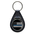 Police Lives Matter Thin Blue Line Black Leather Keychain Silver Keyring