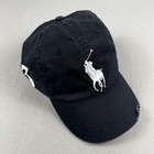 Polo Ralph Lauren Hat Cap Black Twill Leather Strap Big Pony Logo Sport Baseball