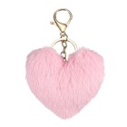Pom Pom Keychain, Faux Rabbit Fur Fluffy Pompoms Keyring Heart, Light Pink