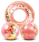 Pool Float - Rose Gold Inflatable 2 Beach Balls and Pool Float Tube - Set of 3