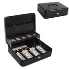 Cash Box with Key Lock Safe Metal Money Box w/Money Tray for Security Lock Box